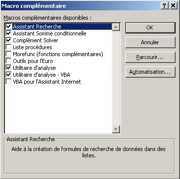 3) Veuillez aussi contrôler que les macros complémentaires ci-dessous (figure 2) sont cochées.