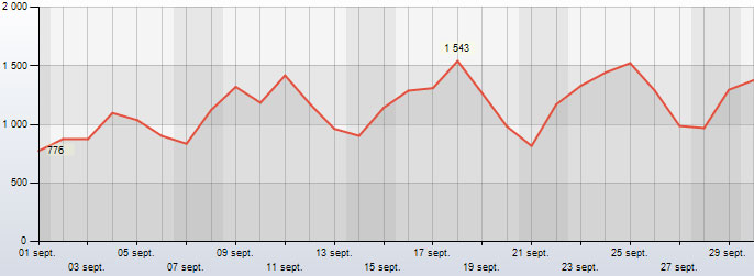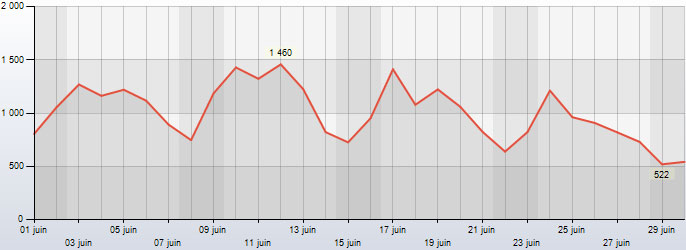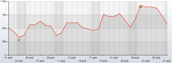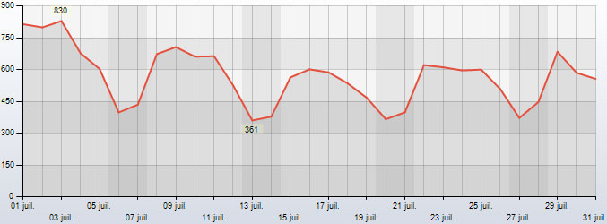 Mois par mois (Visites) Décembre 2013 (27'268 = 879 vis./j.) Novembre 2013 (34'496 = 1149 vis./j.) Octobre 2013 (34'106 = 1100 vis./j.) Septembre 2013 (34'271 = 1142 vis./j.) Août 2013 (18'905 = 609 vis./j.) Juillet 2013 (17'648 = 569 vis./j.) Juin 2013 (30'203 = 1208 vis./j.)